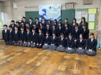 卒業アルバムのクラス写真を撮影しています。2組の様子です。