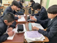 こちらも、平行四辺形になるための条件の証明をしています。黒板全面に証明が書かれて...