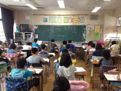 問題と解答用紙が分かれているので、やりなれていない子もいますが、学校全体でベストな環境(適温な教室、静かな校舎)を作り、調査を実施しました。