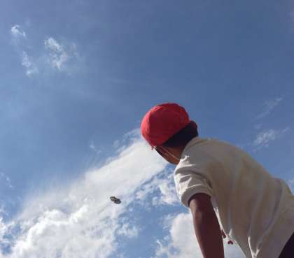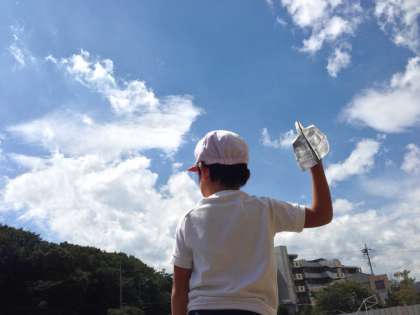 紙飛行機専用の折り紙を使って紙飛行機大会をしました。低学年では、折り紙など、指先を使う活動も大切にしたいと考えています。