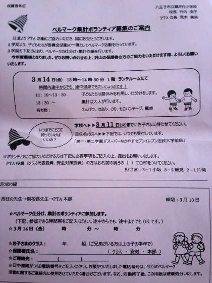 ベルマークご協力お願いします!