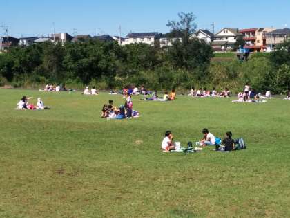 また見学後は、浅川の河川敷でお弁当を食べました。