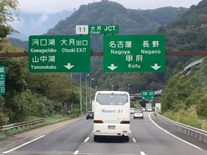 双葉サービスエリアに向かっています。高速道路に入りましたので、バスレクのスタートです。千秋先生から指導して頂きましたバスレク。子供たちの力だけで進めております。