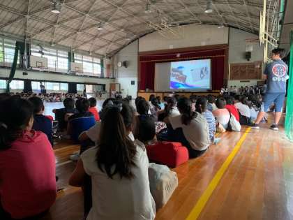 小中一貫教育の取組として椚田中学校へ部活見学に行きました。15の部活動が2分間ずつ活動を紹介してくれたり、生徒会の皆さんが椚田中学校の生活やよさを紹介してくれたりと、とても充実した部活動と学校の紹介でした。
