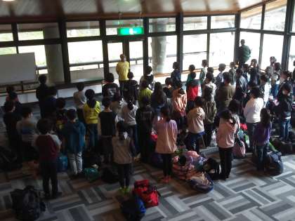 朝食を済まし、部屋の片付けをメンバーで協力して行いました。特に、布団の片付けの時は、声をかけながら助け合って行う姿が立派でした。