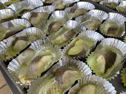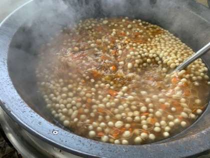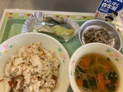 今日はかてめし・桑都焼き・絹のお吸い物・梅おかかキャベツでした。絹のお吸い物は、白玉粉やシルクパウダーを使用して、ひとつひとつ捏ね、丸めて作りました。桑都焼きは桑の葉粉で自然な着色をして、桑に見立てました。とても手の込んだ献立でしたが、皆さんが残さず食べてくれると、頑張ってよかったな、という気持ちになります!