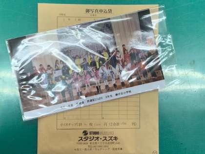 先日、学芸会の写真を申込を家庭に配布しました。