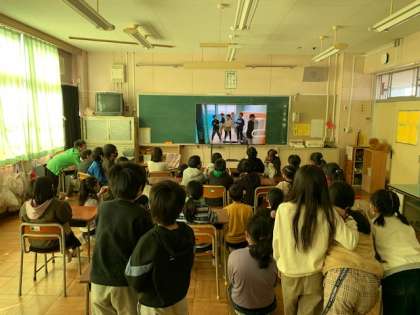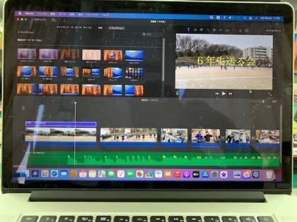 明日は六年生を送る会です。三年生の子供たちは、自分たちが作ったビデオレターの内容を確認しました。