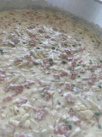 マカロニグラタンには桜のマカロニを使用しました。ほんのりピンク色のマカロニに喜んでくれている子も多くいました。
