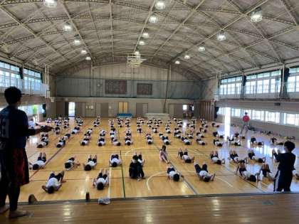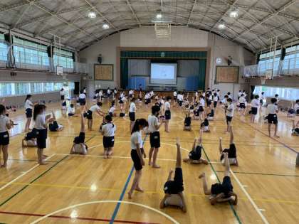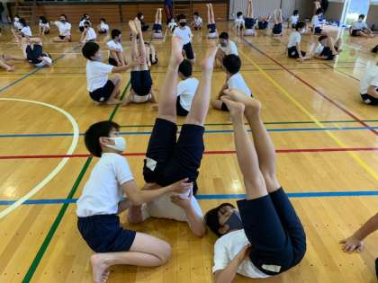 示範のあとは、五年生による実践へ。やっていると難しいけど、面白い気持ちが勝ります。