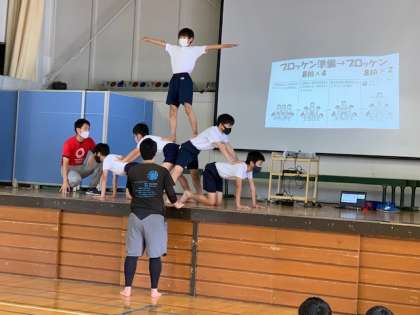 組体操の練習では6人技、瞬間ピラミッドまで完成。次は前半の通し練習です。