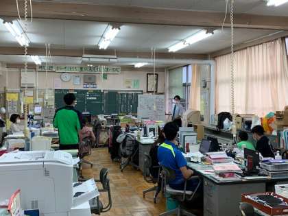 運動会の実施に向けて幹部の先生方で集まり、感染症対策の確認を行いました。対策として講じていくことや保護者の皆様にご協力をいただくことは副校長先生が案内にまとめて家庭へ配布できるようにしていきます。