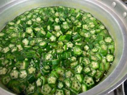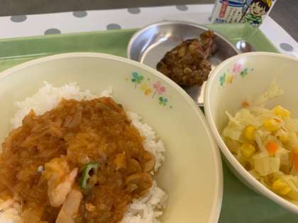 今日の給食はアメリカの料理です。ガンボはアメリカ南部の料理です。トマトベースで野菜を煮込み、茹でたオクラを合わせてトロッと仕上げました。バッファローウィングはニューヨーク州にあるバッファローという町で生まれた料理です。