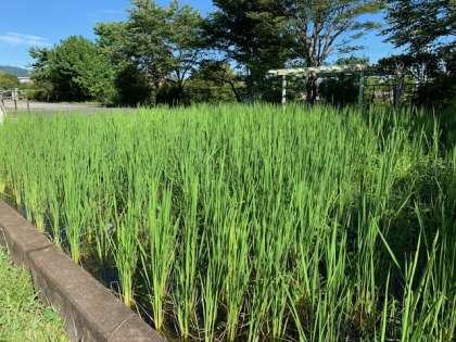 朝はのんびりカラスが水浴びしている緑が丘の田んぼです。