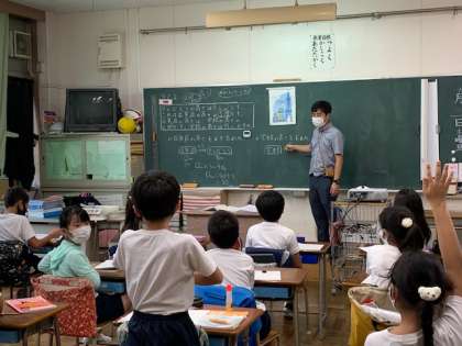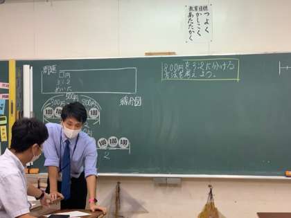 森先生は、八王子市教育研究会算数部の副部長を務めています。今週は毎日夜遅くまで、算数の研究をしていました。9月22日水曜日は午前授業です。それは午後から先生たちの研究会が行われるからです。算数部で授業する先生の授業づくりを毎日検討されている、面倒見がよい森先生。澤崎先生もこの算数部の部員。森先生と一緒に研究しています。