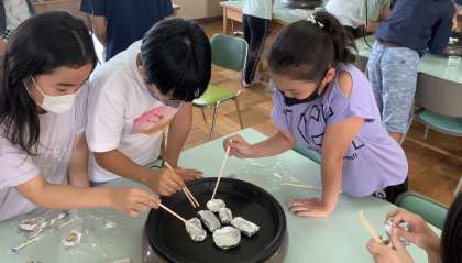 自然クラブでは緑が丘の自然ならではの体験をしています。この日はブレイク。砂糖を使って昔ながらのべっこう飴にチャレンジ!