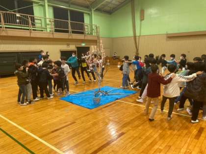 キャンドルを囲んで、フォークダンスを楽しんでます。みんなの胸にまた一つ思い出が刻まれました。
