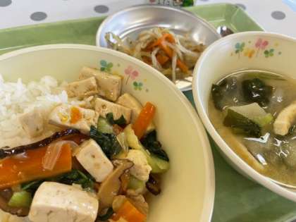 今日は給食時間前に給食室から豆腐のうま煮のごま油の香りが漂っていました。かおり炒めのにんにくの香りや豆腐のうま煮のごま油の香りは食欲を増進させます。今週は10月にもかかわらず暑い日が続いているのでたくさん食べて体力をつけましょう。
