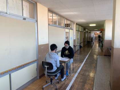 高学年の廊下では二学期成績の通知を、通知表を使って行われています。田中先生は視聴覚室、原先生と澤崎先生は廊下、平澤は図書室。それぞれ子どもたちに通知している間、子どもたちは冬休みの宿題、寄せ書き、読書、整理整頓などに取り組んでいました。