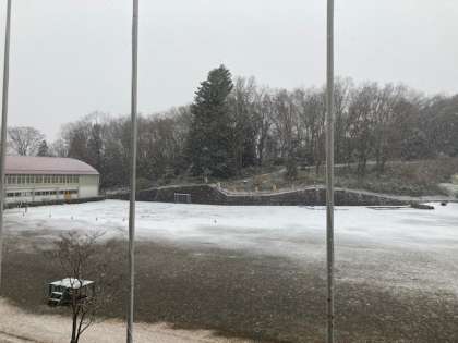 校庭や森の地面は、雪がうっすら積もり、白くなってきました。まだ冬休みで、今日も静かな校舎内ではありますが、いっそう深々と静けさが増し、さらに冷え込んできました。