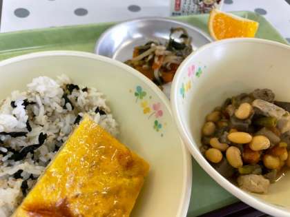 今日は「もったいないからはじまるSDGs」の食育メモでした。昨日の給食の残菜は、ごはん12人分、いかの香味炒め3人分、肉じゃが9人分でした。皆さん1人分を意識して食べられているようですが、牛乳19人分と少し多かったので「もう一口」をがんばれるとより良いと思います。
