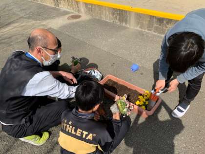副校長先生と 花いっぱい運動