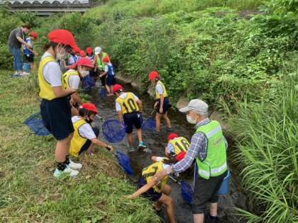 草や石の下を、網でガサガサすると、いろいろな生物が見つかります。