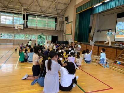 と、見立てて、キャンプファイアーレクリエーションの練習とクイズ大会を催しました!