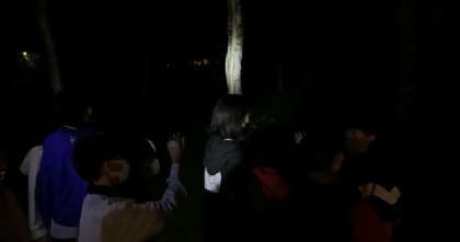 ナイトハイクはペアで夜道を歩くのではなく、集団で歩きました。懐中電灯でシカの群れを見付けたり、源泉の沼でホタルを見付けたりしました。