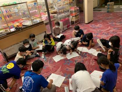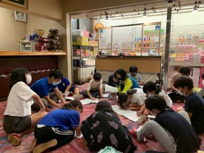ロビーでは班長会議。今日の振り返りをしています。みんな優秀なリーダーたち。今日の反省点や改善の仕方を話し合っています。