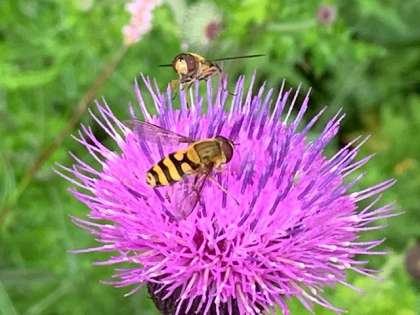 小田代原、昆虫いっぱいです!ハナアブもたくさん、昆虫好きにはたまらん!森ではカッコウも鳴いています。