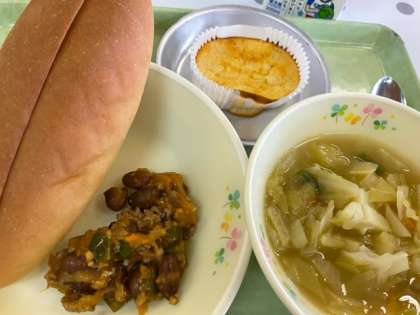 11/9の給食 公開日 2022/11/11 更新日 2022/11/11 給食室 ・チリビーンズサンド ・野菜のスープ煮 ・ヨーグルトポムポム 今日のヨーグルトポムポムにはレーズンとりんごが入っています。りんごを食べると病気になりにくくなることから「1日1個のりんごで医者いらず」ということわざがあります。しっかり食べて元気に過ごしましょう。 いいね(0)