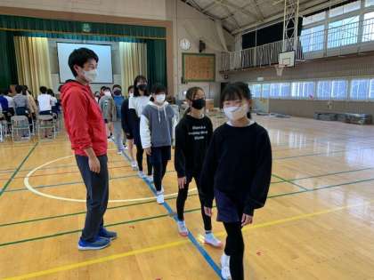 一年生の有志グループが、のどじまん大会の練習をしています。今週末は低学年の部です。