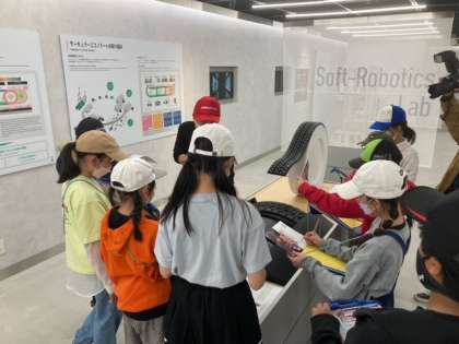 タイヤの秘密、隠された技術を学べます。実によく聞き、よく学ぶ5年生です。