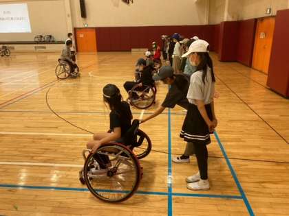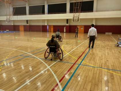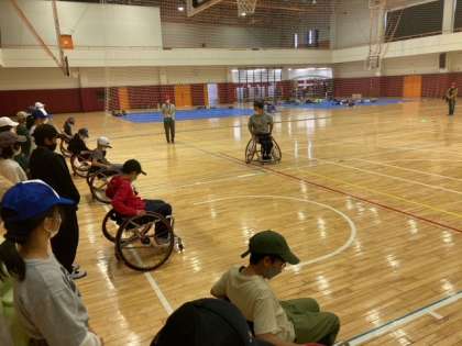 スポーツ用車椅子の体験をさせていただきました。初めてでも上手な子と思った以上に苦戦する子が。