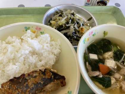 今日の小松菜汁の小松菜は東京都で作られたものです。小松菜は昔から東京都でも多くとれる野菜です。しっかり食べられましたか。