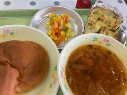3/2の給食 公開日 2023/03/10 更新日 2023/03/10 給食室 ・ミルクパン ・たらとじゃがいものグラタン ・コーンサラダ ・ミネストローネスープ 今日はたらとじゃがいものグラタンです。たらは白身の魚で、身が崩れやすいので、一度茹でた後に身を崩さないようにじゃがいもやルウと合わせました。たらの塩気と滑らかなルウの相性が良かったと感想をもらいました! いいね(0)