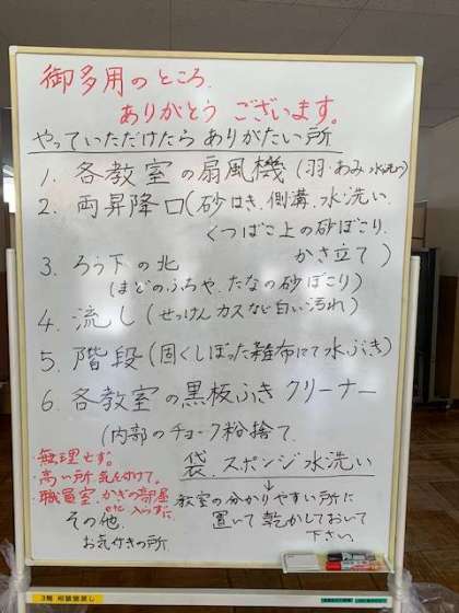 いつも学校のためにありがとうございます!6年生、気持ちよく卒業できます。新1年生の入学式でもキレイなままに!