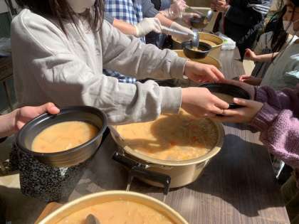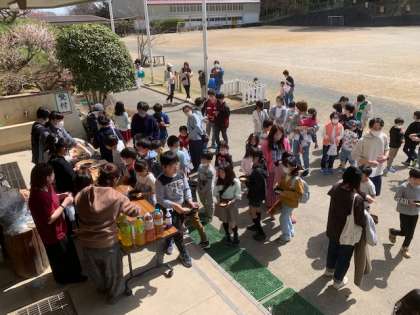 学校大掃除が終わったら、豚汁のお振舞いです。子供たちもお手伝いいただいた保護者の皆様も、お腹いっぱい豚汁をいただきました!
