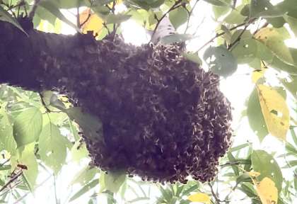 自然豊か緑が丘 公開日 2023/09/11 更新日 2023/09/11 5年生 5年生の稲の実りは、例年より早く色づき始めています。実が重くなってきて垂れ下がってきているのが分かるようになりました。 二枚目の写真はなんとニホンミツバチ。駐車場の木に分蜂中!やはり自然豊かな緑が丘。 しかしながら、見つけた二日後にはいなくなってしまいました。移動中だったのですね。 いいね(0)