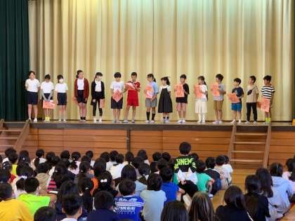 今月のふれあい朝会 公開日 2023/09/27 更新日 2023/09/27 5年生 今月のふれあい朝会では、青少対標語の発表が行われました。 写真は各クラスより選出された標語を発表する子供たちです。 いいね(0)