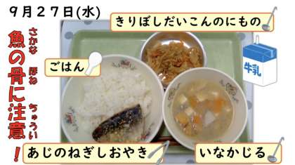 魚の骨に注意!と伝えましたが、 「おはし名人」を目指すみんなは上手に 骨が取れましたか?