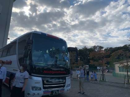 姫木平移動教室へ出発!5年生は55人全員揃っての出発!現地天気予報によれば、姫木平は終日晴れ!ハイキングも最高な条件で行けます。