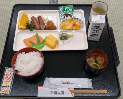 宿に戻って朝食です。 ハイキングに向かう前にしっかり食べました。