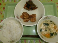 ☆22日の給食ごはんほきのごまがらめ茎わかめのきんぴらかきたま汁牛乳