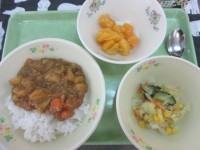 今日の献立・カレーライス・フレンチサラダ・黄桃缶・牛乳