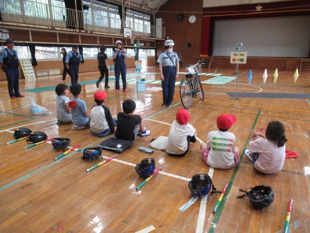 本日5,6校時、3年生と5年生が自転車安全教室を行いました。5校時は、体育館で3年生が実技の勉強、5年生が教室で講義を受けました。6校時は、3年生が教室で講義を受けました。みんな真剣に自転車の乗り方や、交通ルールを学んでいました。3年生は無事免許証をもらえるといいですね!