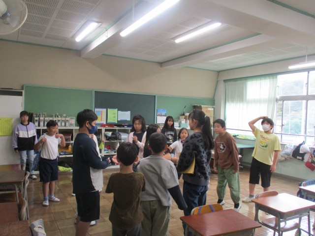 本日の昼休みはワクワク班遊びをしました。雨のため残念ながら校舎内での活動となりましたが、子供たちは楽しそうに遊んでいました。1班は廊下でだるまさんがころんだ、2班は教室で宝探しゲームを行いました。