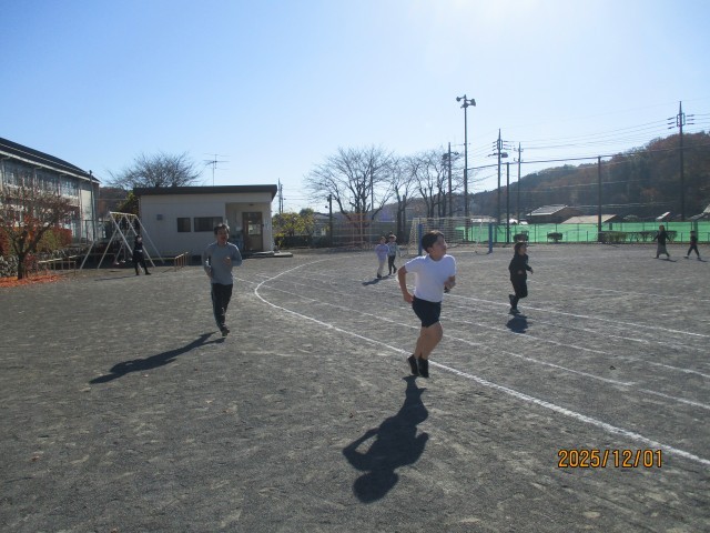 とてもりりしく感じます。校長先生も毎回子どもたちと一緒に走っています。