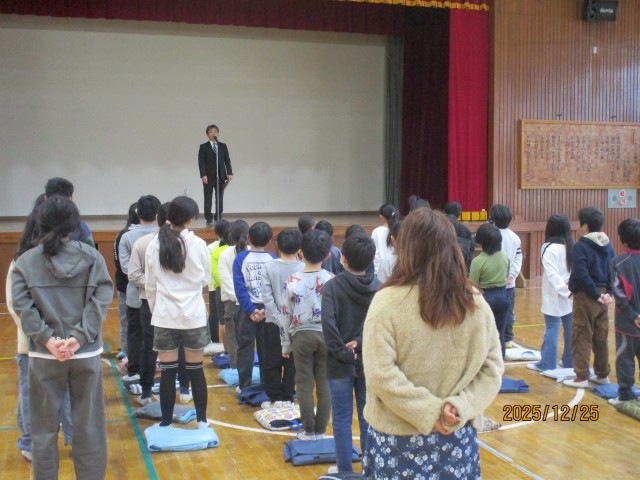 校長先生から「担任の先生方が『考える子』『やさしい子』『元気な子』の教育目標に向けて、皆さんの成長した様子を通知表に表しています。自分はどのような面が成長したのか、頑張ったのか通知表を見て振り返ってください」とお話がありました。
